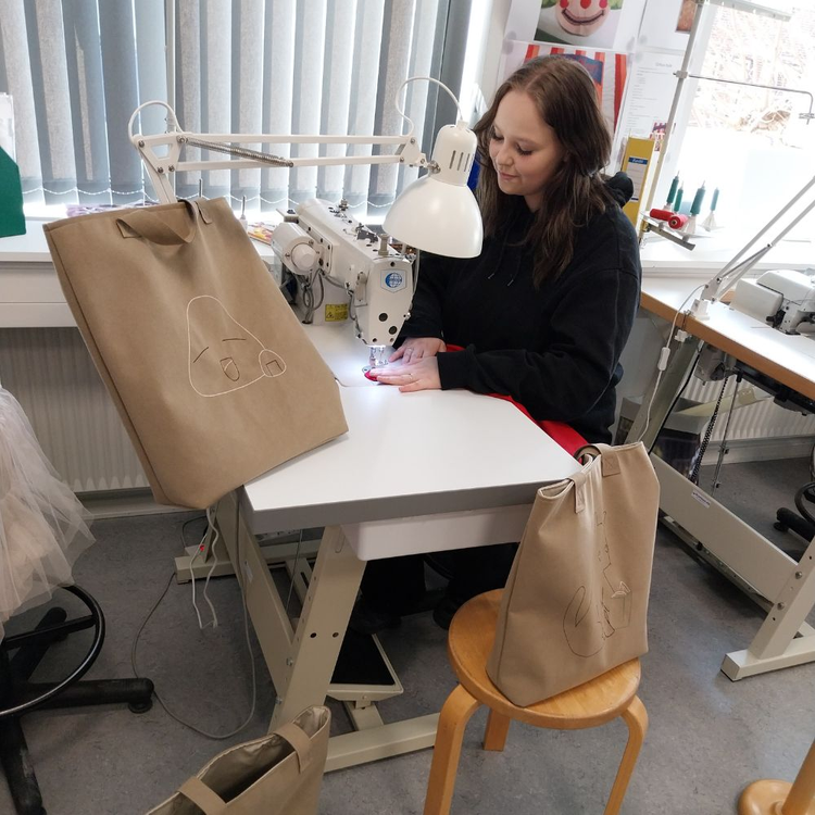 Håndsyede tasker og punge designet og produceret af unge på FGU. Taskerne har en rummelighed, der gør at de kan bruges til både skole eller arbejde. Dens rummelighed gør også at den passer perfekt til en bærbar pc. Samtidig giver det flotte motiv taskerne et unikt look.